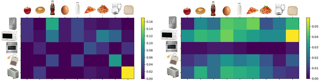Graphical elements used to explain to the user that the robot learned that food items in the “bread” category can be heated up in the toaster (left). The same message is also provided by text (right) and speech.