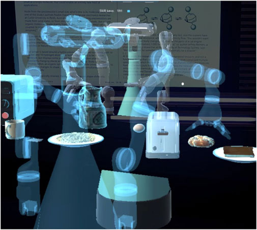 The robot avatar executing the plan it has generated upon request from the tutor.